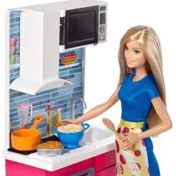 - Zestaw zawiera: lalki Barbie, meble kuchenne, akcesoria do gotowania