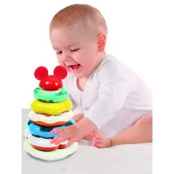 Kolorowa Wieża Mickey Mouse od Clementoni Disney Baby to klasyczna, edukacyjna zabawka dla najmłodszych dzieci, rozwijająca zręczność, koordynację i percepcję wzrokową. Pięć kolorowych pierścieni o różnych kształtach i fakturach zachęca maluchy do zabawy i nauki poprzez dotyk i