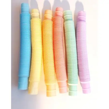 Rurki POP Tuby Sensoryczne Montessori to zestaw 6 dużych, pastelowych rurek, które stanowią doskonałą zabawkę edukacyjną dla dzieci powyżej 3. roku życia. Wspierają rozwój sensoryczny, manualny i wyobraźnię dzieci. To doskonały wybór dla rodziców i nauczycieli, którzy pragną wprowadzić dzieci w świat edukacji poprzez zabawę.