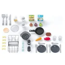 Ile akcesoriów zawiera kuchnia? Dokładnie 39 elementów, w tym garnki, sztućce i produkty spożywcze.