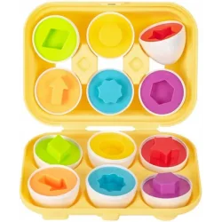Jajka Edukacyjne do Nauki Kształtów Norimpex 3+ to bezpieczny i rozwijający zestaw przeznaczony dla najmłodszych dzieci. Produkt pomaga ćwiczyć rozpoznawanie kształtów, rozwój motoryki małej oraz logiczne dopasowywanie elementów. Każde jajko skrywa inny