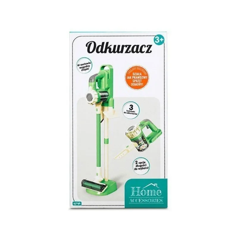 Odkurzacz dziecięcy interaktywny ze stojakiem Artyk Home Accessories 3+ to edukacyjna i bezpieczna zabawka dla najmłodszych, która pozwala na naśladowanie dorosłych podczas codziennych obowiązków domowych. Zestaw rozwija