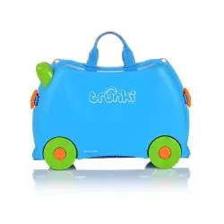 Trunki Terrance to funkcjonalna, bezpieczna i wyjątkowo atrakcyjna dla dzieci jeżdżąca walizeczka, która łączy wygodę podróżowania z zabawą. Zaprojektowana tak, aby dziecko mogło samodzielnie się spakować, odpocząć podczas podróży, a nawet jeździć na walizce, oferuje idealne