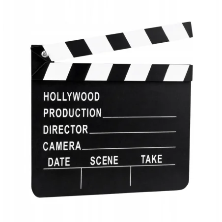 Klaps filmowy 18x20 cm to praktyczne i efektowne akcesorium filmowe, które ułatwia oznaczanie scen i synchronizację dźwięku z obrazem. Idealny dla profesjonalistów i amatorów, a także jako ciekawy gadżet dekoracyjny.