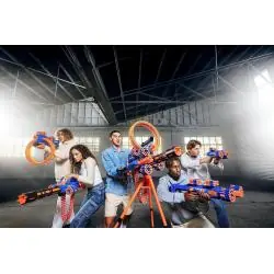 X-Shot Insanity Motorized Rage Fire 36605 to w pełni automatyczna wyrzutnia o oryginalnym designie, zapewniająca dynamiczną zabawę i wyjątkową moc strzału. Dzięki pojemnemu magazynkowi taśmowemu, technologii Air Pocket w strzałkach oraz zasięgowi do 27 metrów, model ten wyróżnia się na tle konkurencyjnych wyrzutni. Zestaw zawiera aż 72