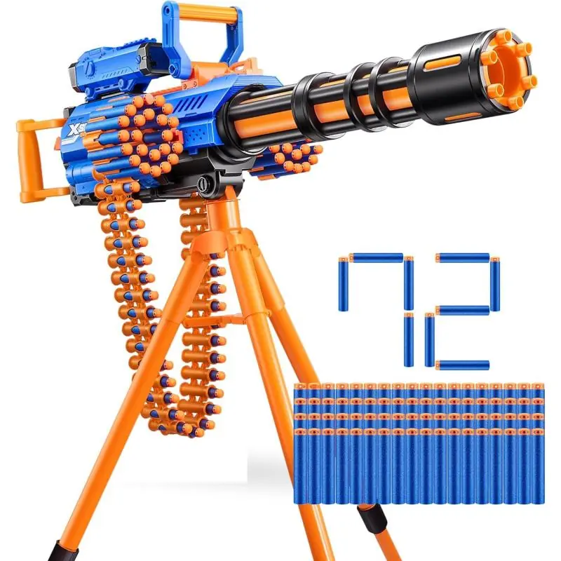 X-Shot Insanity Motorized Rage Fire 36605 to w pełni automatyczna wyrzutnia o oryginalnym designie, zapewniająca dynamiczną zabawę i wyjątkową moc strzału. Dzięki pojemnemu magazynkowi taśmowemu, technologii Air Pocket w strzałkach oraz zasięgowi do 27 metrów, model ten wyróżnia się na tle konkurencyjnych wyrzutni. Zestaw zawiera aż 72 strzałki, dwa doczepiane magazynki, celownik i funkcjonalny stojak, który poprawia stabilność podczas dynamicznych pojedynków.