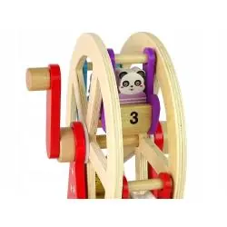 Ta drewniana zabawka edukacyjna to doskonały prezent dla dzieci, który rozwija wyobraźnię, koordynację oraz umiejętności poznawcze. Obrotowy diabelski młyn i kolorowe figurki zapewniają długie godziny angażującej zabawy.