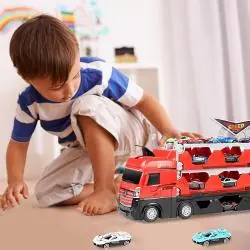 Ciężarówka z lawetą i autkami sprawdzi się jako zabawka do codziennej zabawy w domu, pokoju dziecięcym lub podczas wspólnego spędzania czasu z rodzeństwem i rodzicami. Dziecko może bawić się w transport aut, budowę toru oraz wyścigi z użyciem katapulty, co wspiera rozwój wyobraźni, planowania ruchu i koordynacji. To dobry wybór dla dzieci, które lubią pojazdy, dynamiczną zabawę i samodzielne odkrywanie nowych funkcji zabawki.