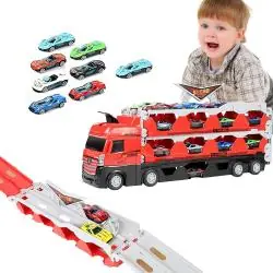 Zestaw 3w1 ciężarówka z lawetą, torem i katapultą autek to atrakcyjna zabawka dla dzieci od 3. roku życia, która łączy kilka form zabawy w jednym komplecie. Duży tir z 3-poziomową lawetą przewozi dołączone resoraki, a po rozłożeniu zmienia się w długi tor dla autek z wyrzutnią. To świetna propozycja dla małych miłośników motoryzacji,
