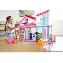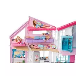 Barbie Domek Malibu dla lalek zmienia się w prawdziwy dom marzeń! Ten kompaktowy domek otwiera się, tworząc przestrzeń do zabawy o szerokości 61 cm. Dwa piętra, 6 pokoi z wyposażeniem - kuchnia, jadalnia, salon, sypialnia, łazienka i patio na świeżym powietrzu - plus funkcja przekształcania 2w1. Odwróć ścianę z kominkiem w salonie, aby stworzyć kino domowe; otwórz toaletkę w łazience, aby odsłonić prysznic; opuść sufit sypialni, aby przekształcić go w łóżko piętrowe, aby pomieścić 4 siostry. Ponadto domek wzbogacono o ponad 25 dodatkowych akcesoriów.