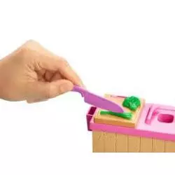 Małe kucharki pokochają samodzielne robienie noodli. W zestawie znajduje się lalka Barbie w profesjonalnym stroju (z uroczą grafiką inspirowaną gotowaniem), stanowisko do przygotowania posiłku i akcesoria. Aby zrobić noodle, weź białą masę z jednego pojemnika (w drugim jest zielona masa) i włóż ją do otworu pośrodku stanowiska do pracy. Potem postaw miseczkę z pokrywką nad otworem, naciśnij boczny blat i obserwuj, jak makaron pojawia się w misce!