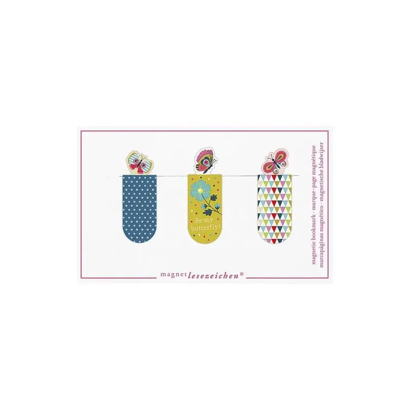 Zakładki magnetyczne do książek Motyle 3 sztuki to funkcjonalne i estetyczne akcesorium dla dzieci, młodzieży oraz dorosłych miłośników czytania. Zestaw trzech zakładek z kolorowym motywem motyli pozwala wygodnie zaznaczyć stronę bez ryzyka wypadania czy zniszczenia