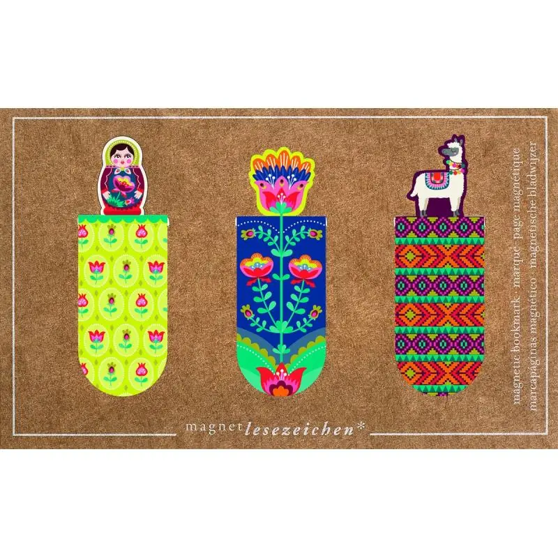 MOSES Zakładki magnetyczne Folklor to praktyczne i estetyczne rozwiązanie dla każdego, kto ceni porządek w książkach, zeszytach i dokumentach. Kolorowy wzór folklorystyczny dodaje wyjątkowego charakteru i inspiruje do nauki oraz pracy twórczej.