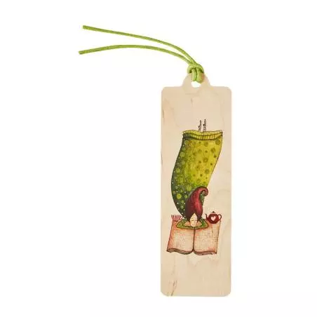 • drewniana zakładka do ksiażki ozdobiona oryginalną grafiką