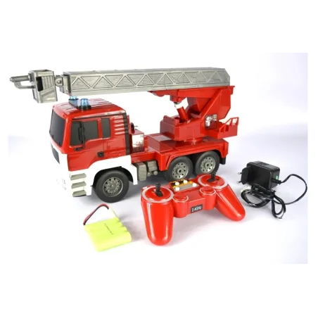 ZDALNIE STEROWANY WÓZ STRAŻACKI MAN E517 to realistyczny pojazd R/C w skali 1:20, który zachwyci każdego małego strażaka. Efekty świetlne, dźwiękowe, obrotowa drabina oraz pełna kontrola radiowa sprawiają, że zabawa staje się niezwykle wciągająca. Długość aż 42 cm, zdalnie podnoszona drabina wydłużana do 55 cm oraz sterowanie 2.4 GHz