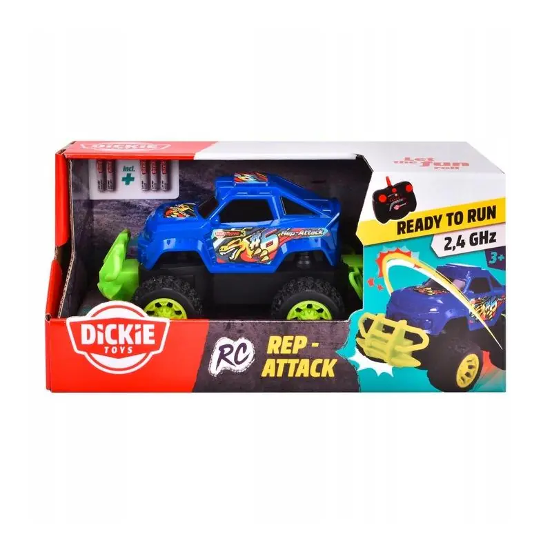 Zestaw Dickie RC Samochód Zdalnie Sterowany Rep Attack to doskonały wybór dla dzieci od 6 lat, które chcą rozpocząć przygodę z pojazdami RC. Stabilny monster truck, intuicyjny pilot i możliwość sterowania wieloma pojazdami jednocześnie gwarantują niezapomniane emocje i kreatywną zabawę.