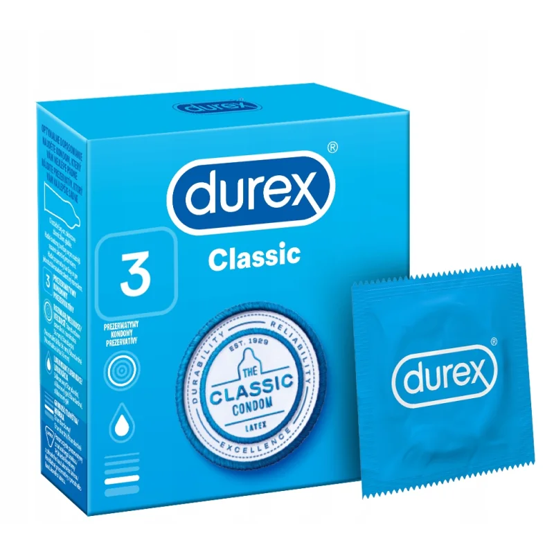 Durex Classic to klasyczne prezerwatywy wykonane z naturalnej gumy lateksowej, o anatomicznym kształcie Easy-On zakończone zbiorniczkiem. Zapewniają wygodę, bezpieczeństwo i komfort podczas zbliżenia, a dzięki specjalnej technologii wytwarzania mają przyjemniejszy zapach, który nie zakłóca intymnych chwil.