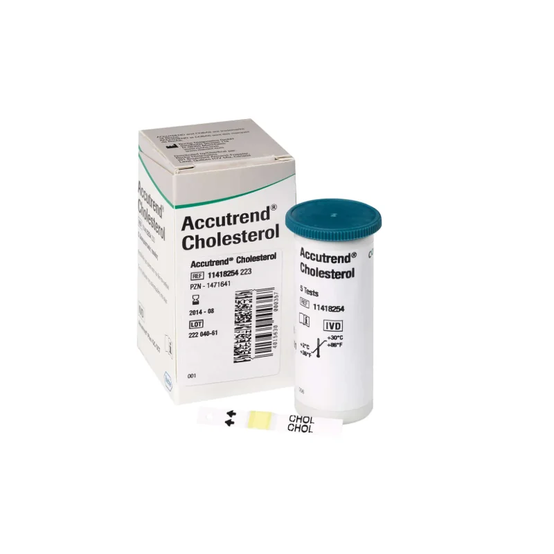 Accutrend Cholesterol to profesjonalne paski testowe przeznaczone do oznaczania poziomu cholesterolu całkowitego w krwi włośniczkowej przy użyciu analizatora Accutrend Plus. Zostały opracowane przez firmę Roche, aby zapewnić najwyższą precyzję, powtarzalność i wiarygodność wyników w warunkach domowych i laboratoryjnych.