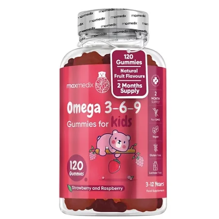 Suplement diety Żelki Omega 3, 6 i 9 dla dzieci to smaczny, wegański sposób na codzienne wsparcie zdrowia. Zawierają niezbędne nienasycone kwasy tłuszczowe (NNKT) wspomagające rozwój mózgu, wzroku i układu odpornościowego. W każdym opakowaniu znajduje się 120 żelków o naturalnym smaku truskawek i malin – wystarczających na 2 miesiące suplementacji. Produkt nie zawiera żelatyny, laktozy ani glutenu, dzięki czemu jest odpowiedni również dla dzieci na diecie wegańskiej.