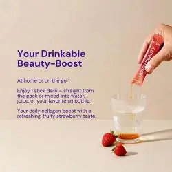 HER ONE BEAUTY KOLLAGEN to suplement diety w płynie w wygodnych, jednodawkowych saszetkach, stworzony z myślą o kompleksowym wsparciu skóry, włosów i paznokci. Gotowa do spożycia formuła łączy bioaktywne peptydy kolagenowe VERISOL® typu I i III, kwas hialuronowy, biotynę oraz witaminę C, która wspiera prawidłowe tworzenie kolagenu. Produkt ma postać płynną, nie wymaga przygotowania i doskonale sprawdza się w codziennej suplementacji.