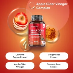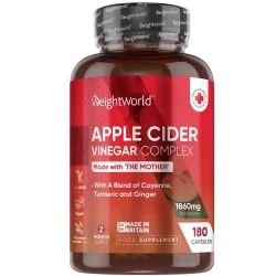 Kapsułki z Octem Jabłkowym WeightWorld to suplement diety w kapsułkach, oparty na składnikach pochodzenia naturalnego, opracowany z myślą o codziennej suplementacji. Każda porcja dostarcza 1860 mg składników aktywnych, w tym 1500 mg octu jabłkowego, wzbogaconych o pieprz cayenne, imbir, kurkumę oraz cztery szczepy probiotyków Lactobacillus. Produkt jest wegański, bez glutenu, GMO i stearynianu magnezu.