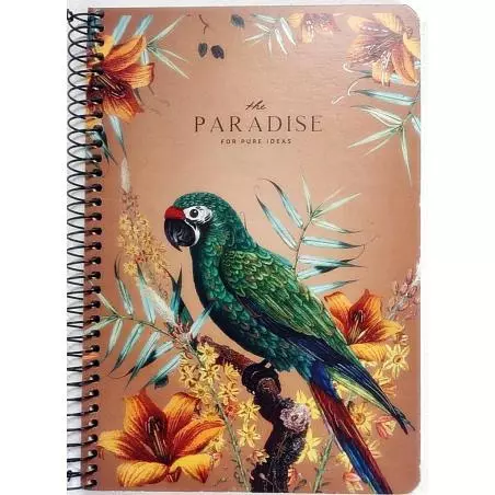 Kołobrulion A5 to zeszyt 96 kartkowy w kratkę z oryginalną kartonową, twardą okładką 600g i pięknym wzorem Posiada spiralę z lewej strony, wyróżnia się kremowym papierem.