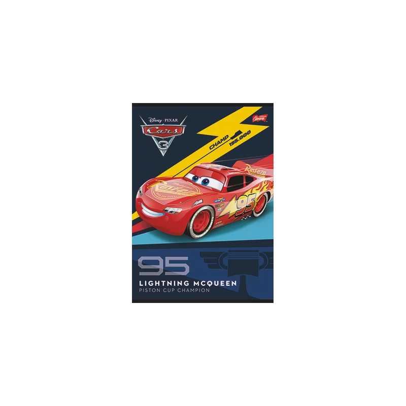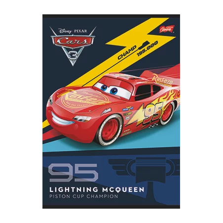 Okładka kredowa z zadrukiem wewnętrznym o gramaturze 250 g/m2 wykorzystuje najnowsze motywy wzornicze Cars 3.