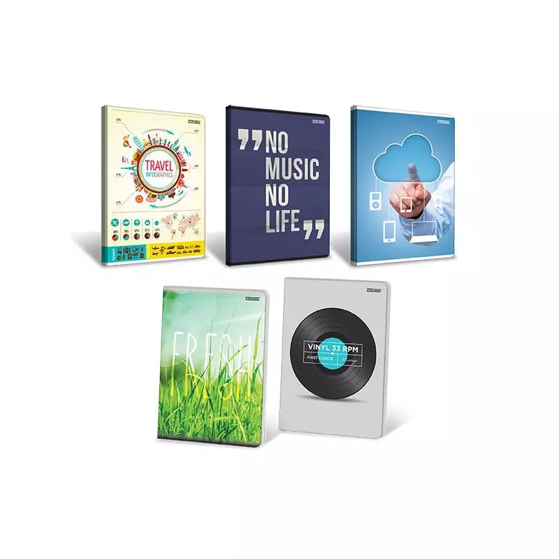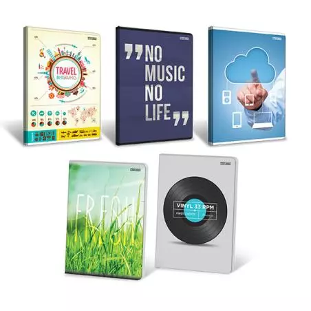 Zeszyt jest wyposażony w miękką lub twardą okładkę, dostępny w różnych kolorach i wzorach, co czyni go zarówno