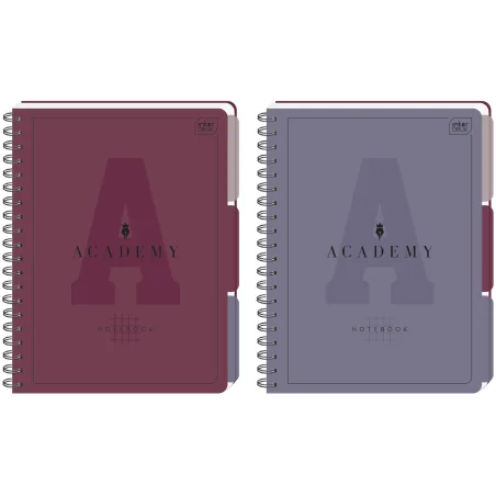 Format: A4. Liczba kartek: 100. Zadruk w kratkę. Zaokrąglone rogi. W środku 3 przekładki oraz grube i supergładkie kartki ze specjalnego papieru 90 g, dzięki którym długopis nie przebije na drugą stronę. Wodoodporne polipropylenowe okładki oraz przekładki. Sygnowane kartki z mikroperforacją i otworami do segregatora. Podwójna spirala zamykana. Academy to kolekcja papiernicza premium stworzona z myślą o uczniach i studentach, ceniących sobie jakość produktu i komfort pisania. Dostępna w dwóch stylowych odsłonach kolorystycznych: pastelowej i stonowanej.