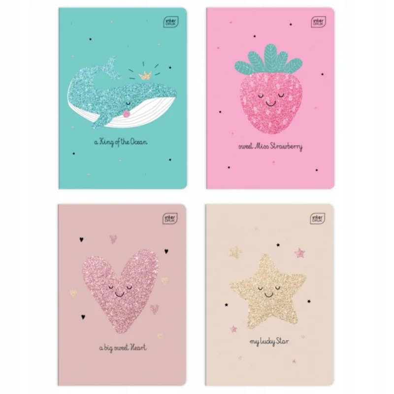 Kolorowa okładka z brokatem - wyróżnia się na tle innych zeszytów, co czyni go atrakcyjnym wyborem.