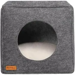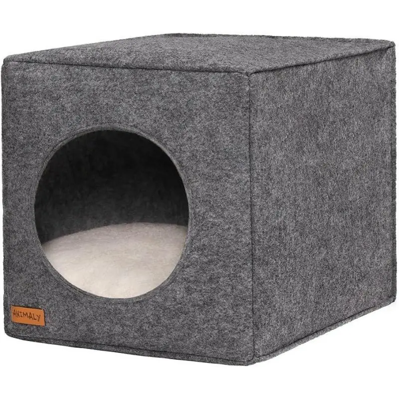 MYANIMALY Pets Cave Filc to ciepły i miękki domek stworzony z myślą o kotach i mniejszych psach. Wykonany z grubego, trwałego filcu, zapewnia komfort i wygodę, chroniąc zwierzaka przed zimnem. Dzięki nowoczesnemu, minimalistycznemu wyglądowi, domek może stanowić stylową dekorację wnętrza i pasować do różnych przestrzeni w domu.