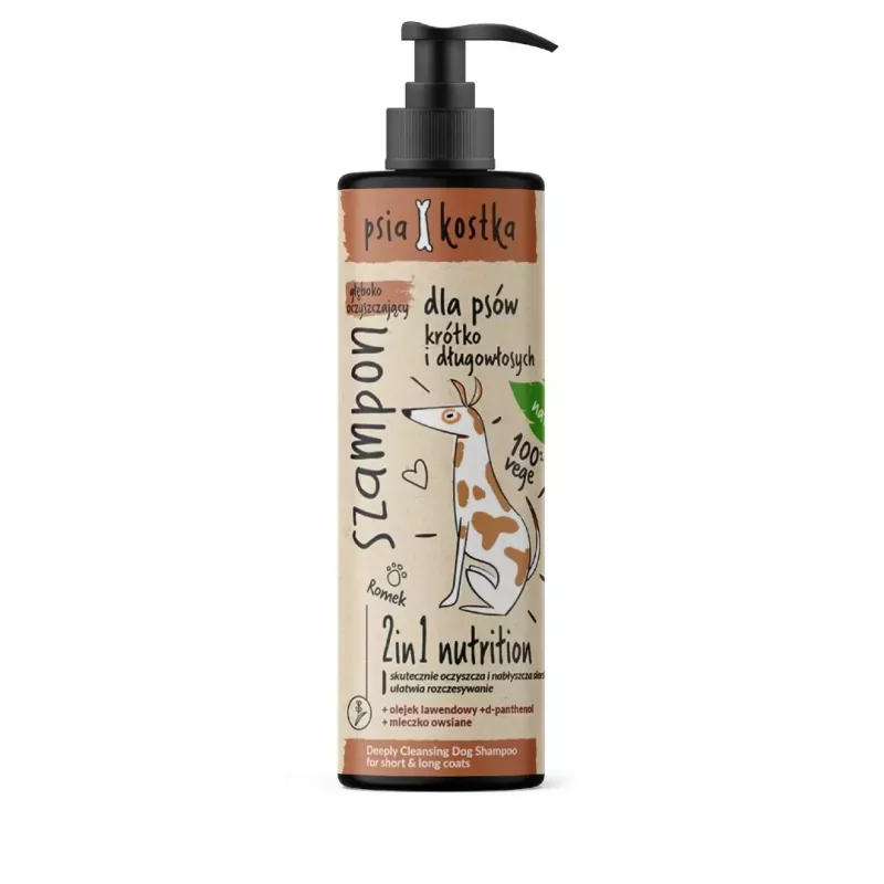Psia Kostka szampon głęboko oczyszczający to produkt, który łączy skuteczność z bezpieczeństwem i komfortem Twojego pupila. Odżywia, nawilża i regeneruje sierść, ułatwia rozczesywanie i pozostawia włos lśniący i miękki. Dzięki naturalnym, wegańskim składnikom pielęgnacja psa staje się przyjemnym rytuałem dla właściciela i pupila.
