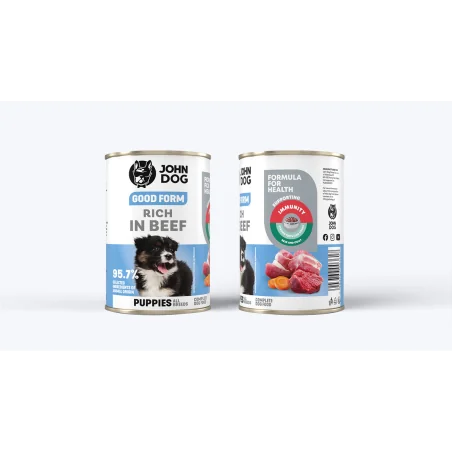 John Dog Good Form karma mokra dla szczeniąt z wołowiną 400 g to zdrowa, smaczna i pełnowartościowa propozycja żywieniowa dla młodych psów, dostarczająca wszystkich niezbędnych składników odżywczych.