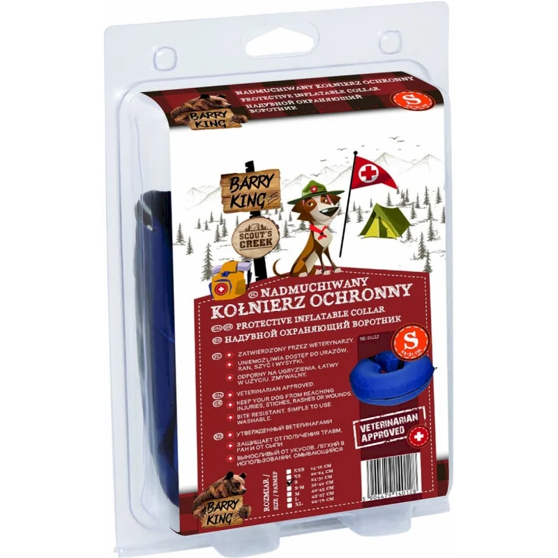Kołnierz nadmuchiwany Barry King S to praktyczne rozwiązanie dla zwierząt wymagających ochrony po zabiegach chirurgicznych. Zapewnia komfort, bezpieczeństwo i swobodę ruchów, a jego nadmuchiwana konstrukcja jest lekka i wygodna dla pupila.